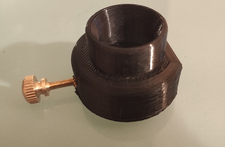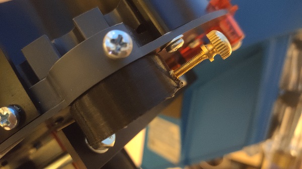 L’adattatore stampato in 3d permette di fissare una sola volta per tutte la vite originale e usare poi una vite a mano (Thumb screw) per fissare velocemente l’imboccatura della molla sul bullet feeder.